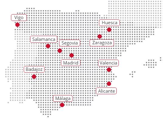 Madrid capital, Fuenlabrada, Parla, Getafe, Alcobendas, Torrejón de Ardoz, Alcorcón, Leganés, Móstoles y Alcalá de Henares